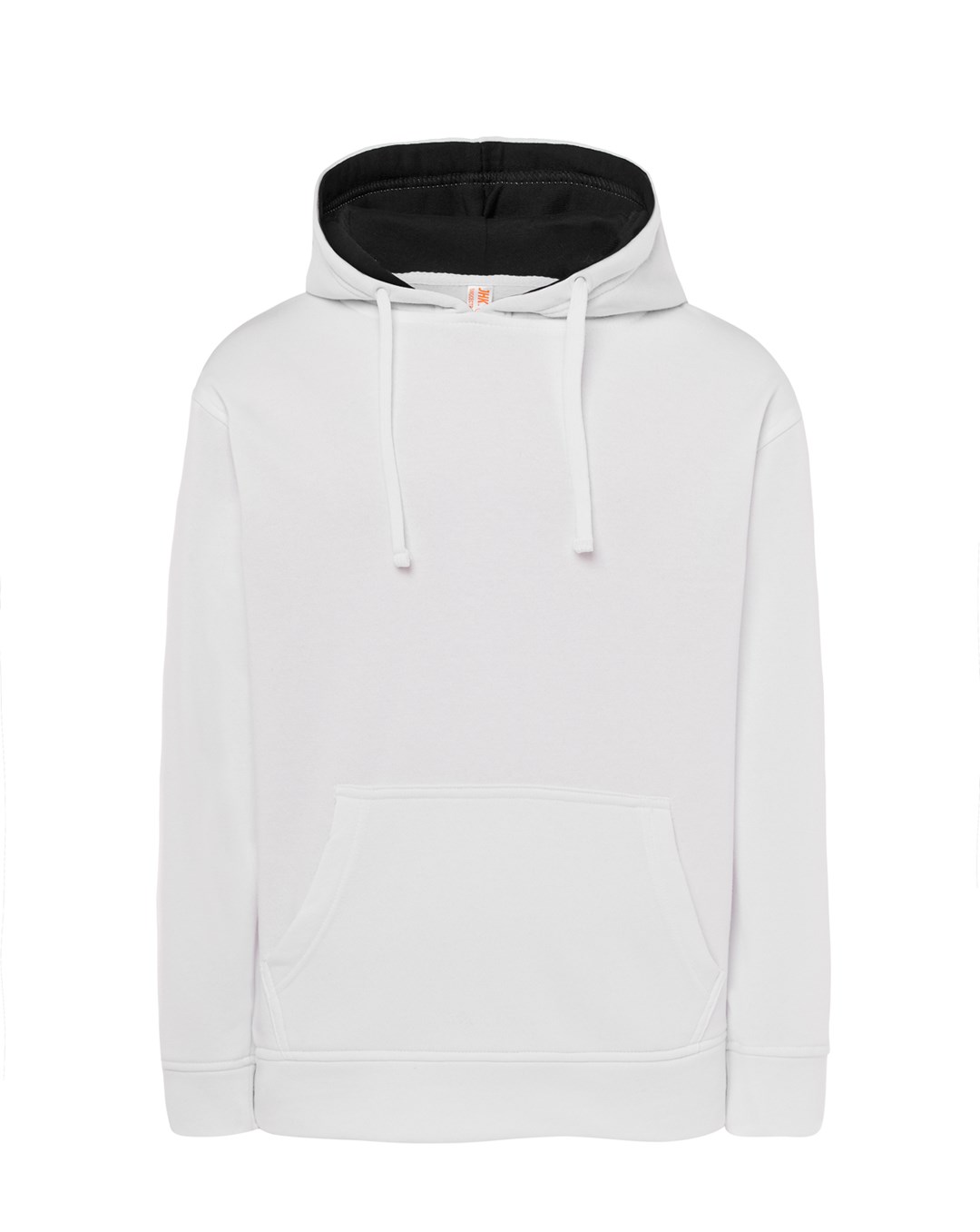 Wnętrze kaptura w kontrastowym kolorze. Sznurki w kolorze bluzy. Naszyta kieszeń kangurka. Ta sama tkanina z mankietami i lamówką. 35% bawełna – 65% poliester.
