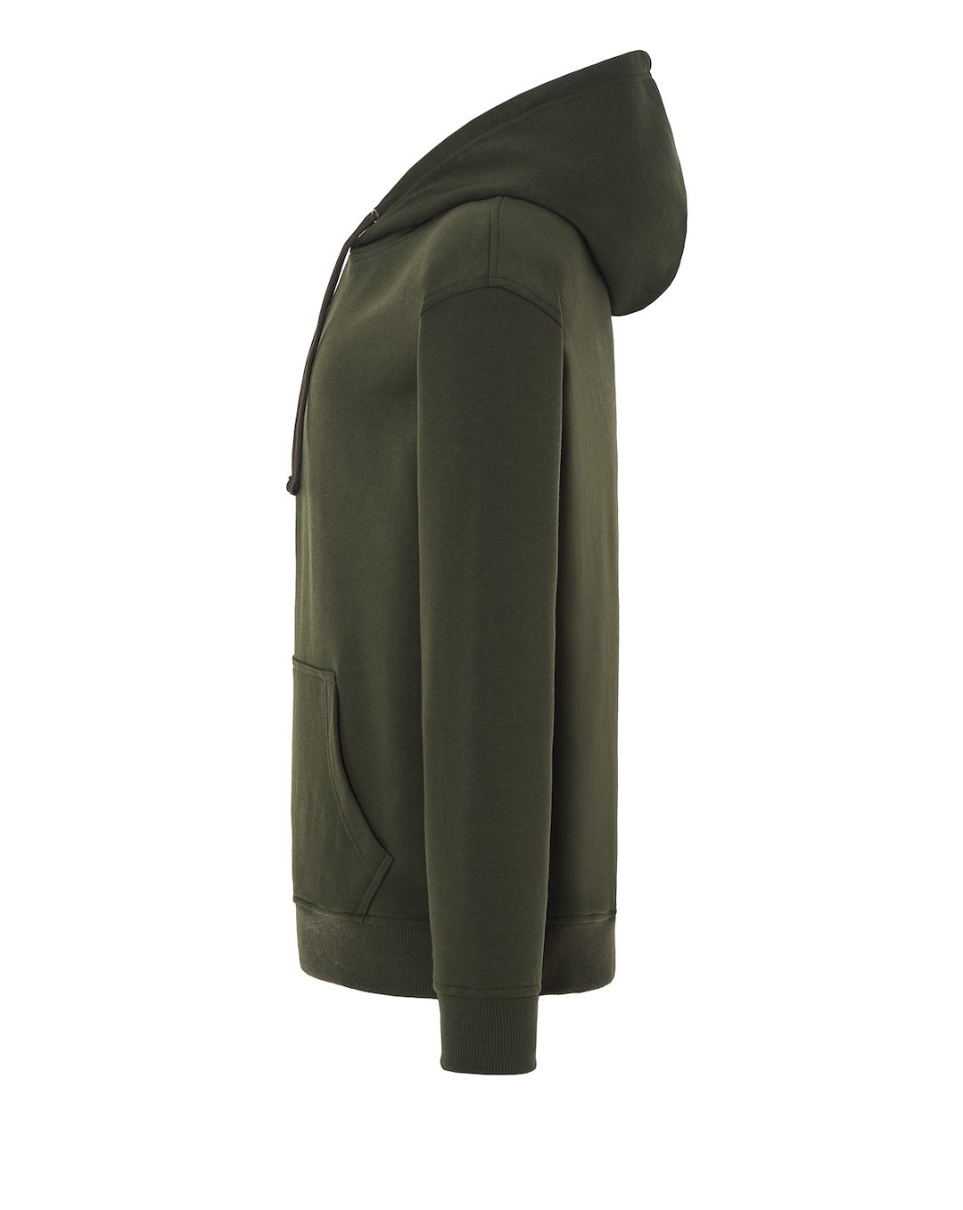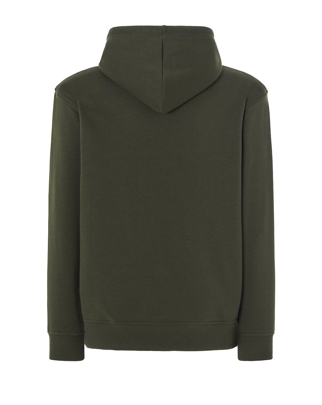 Bluza dresowa z kapturem. Naszywane kieszenie. Wzmocnione lycrą ściągacze. Sznurek ściagający w kapturze. 35% bawełna – 65% poliester.