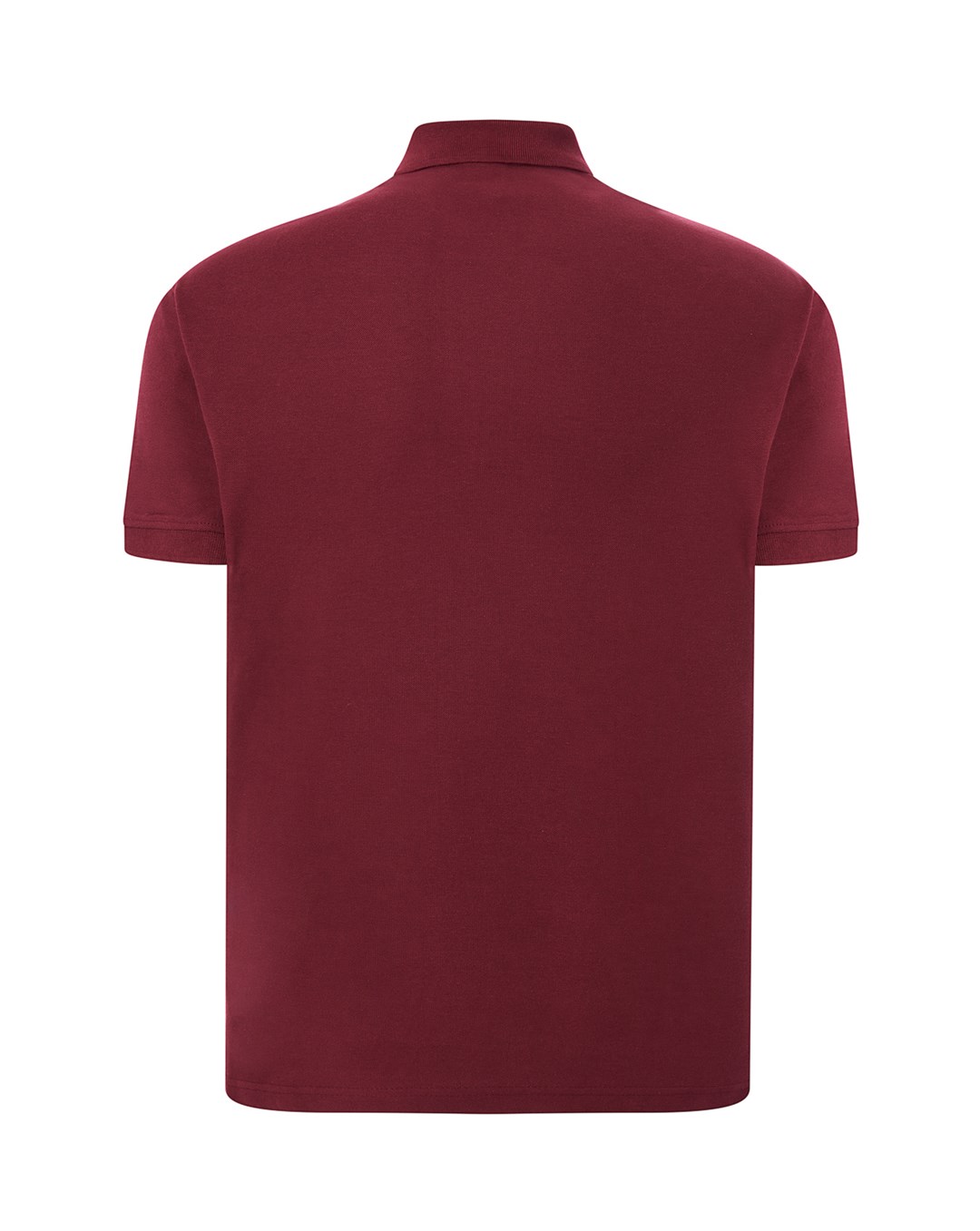 Polo męskie z krótkim rękawem. Zapinane na dwa guziki. Kołnierzyk i rękawy wykończone dzianiną 1×1. Boczne rozcięcia. 100% stabilizowana bawełna czesankowa pique.
