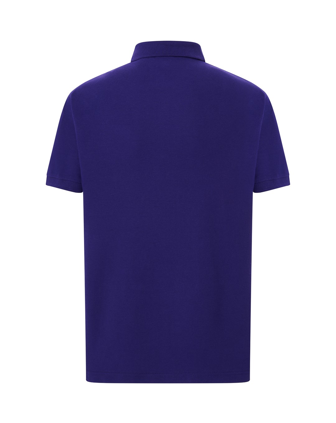 Polo męskie z krótkim rękawem. Zapinane na dwa guziki. Kołnierzyk i rękawy wykończone dzianiną 1×1. Boczne rozcięcia. 100% stabilizowana bawełna czesankowa pique.