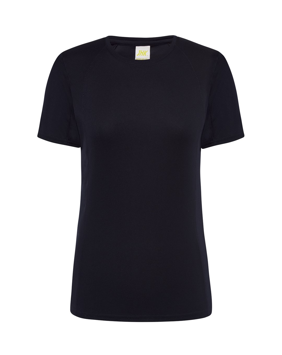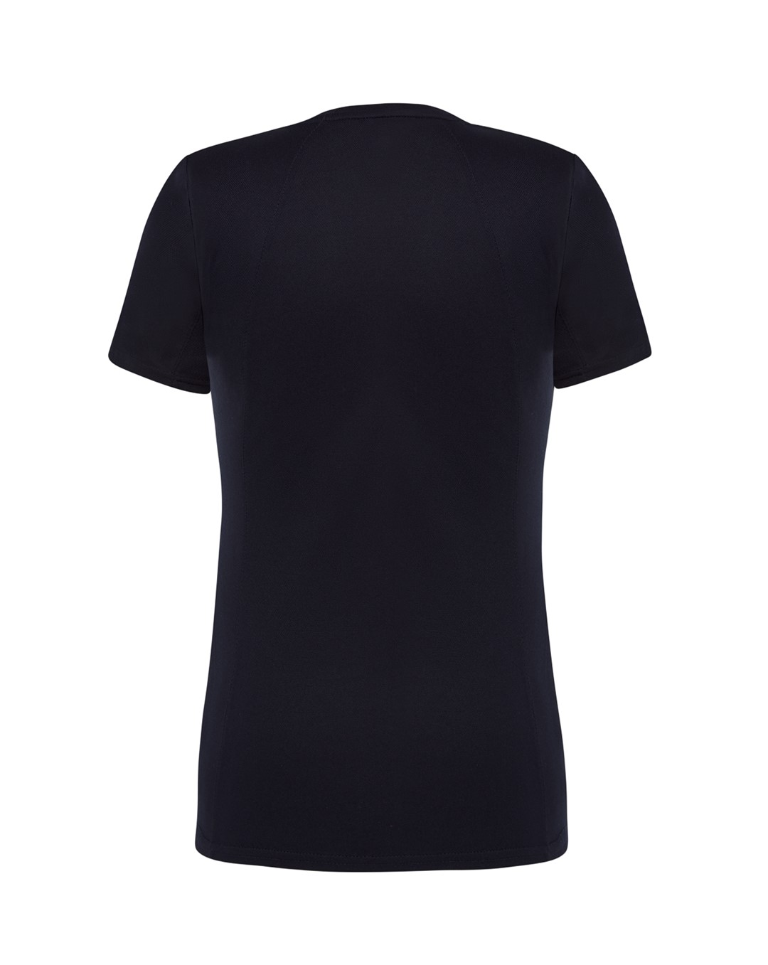 Damski t-shirt sportowy. Dekoracyjne przeszycia z przodu, z tyłu i na rękawach. Krój dopasowany do sylwetki. Oddychający materiał szybkoschnący. 100% poliester teksturowany.