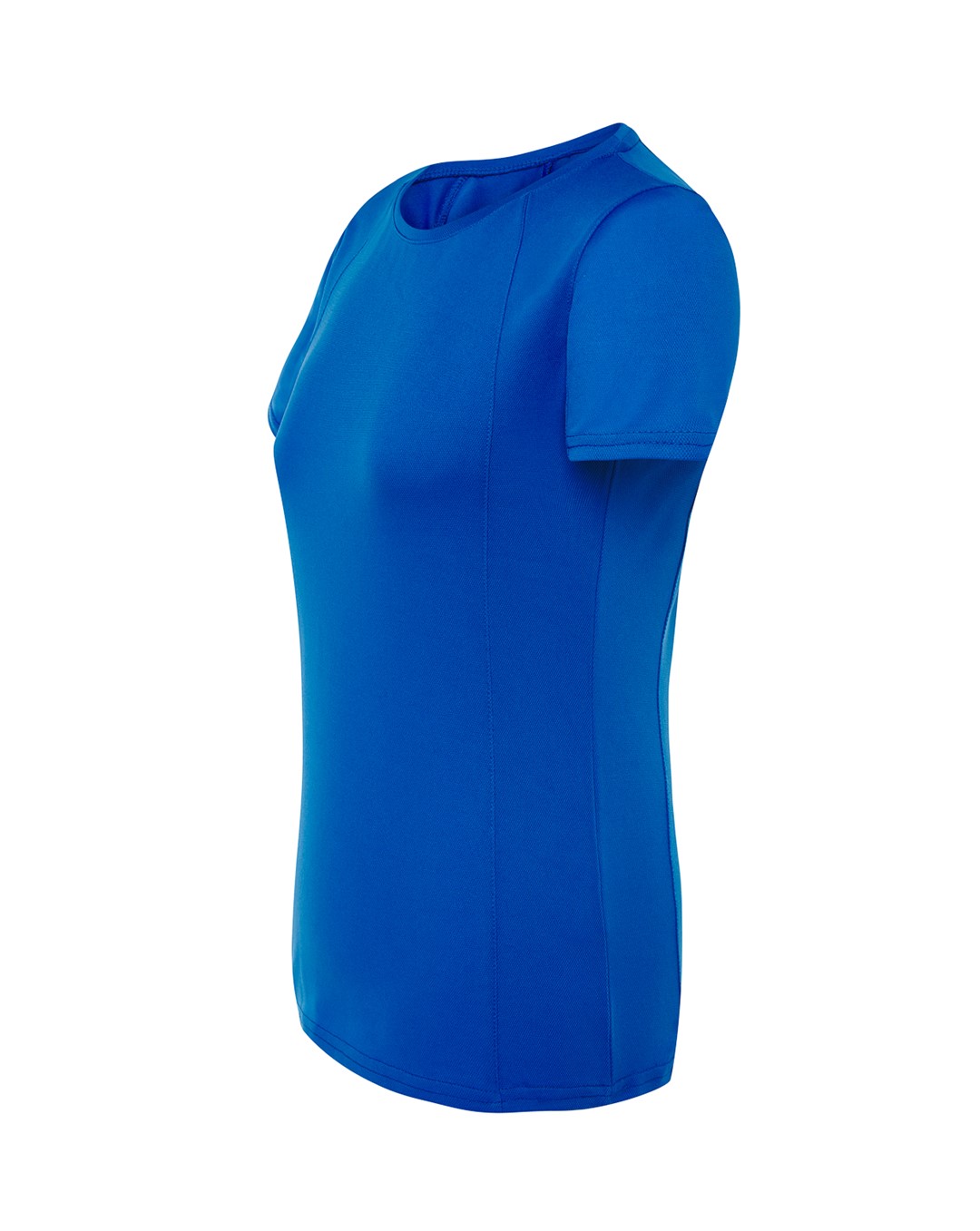 Damski t-shirt sportowy. Dekoracyjne przeszycia z przodu, z tyłu i na rękawach. Krój dopasowany do sylwetki. Oddychający materiał szybkoschnący. 100% poliester teksturowany.