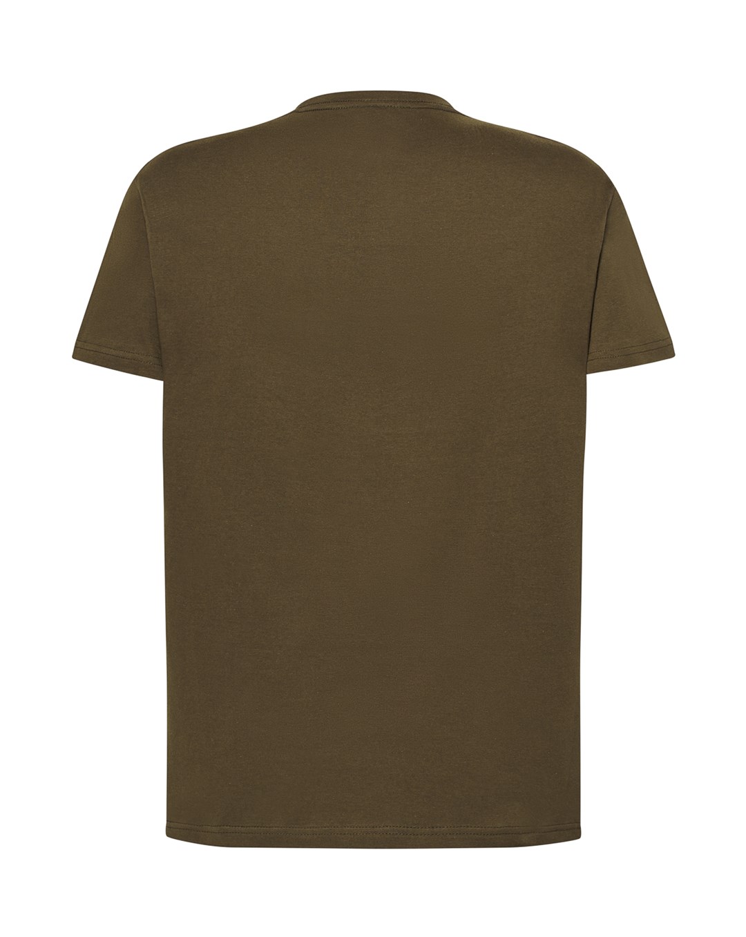 T-shirt męski z krótkim rękawem. Brak bocznych szwów. Podwójne szwy na ramionach. Wzmocniony lycrą ściągacz. Taśma wzmacniająca. 100% bawełna stabilizowana.