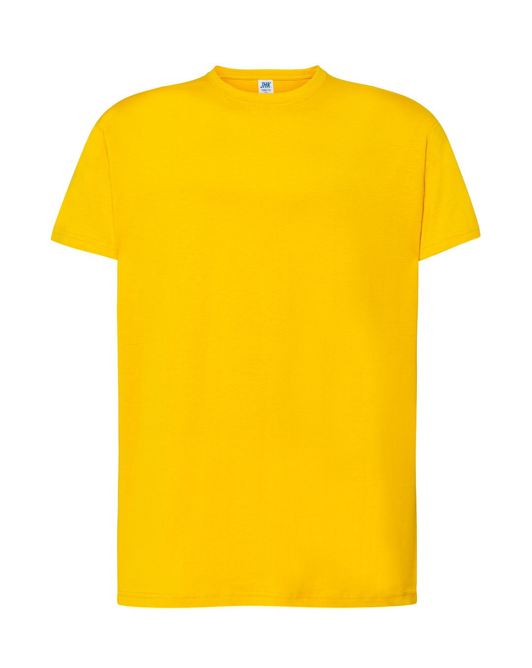 T-shirt męski z krótkim rękawem. Brak bocznych szwów. Podwójne szwy na ramionach. Wzmocniony lycrą ściągacz. Taśma wzmacniająca. 100% bawełna stabilizowana.