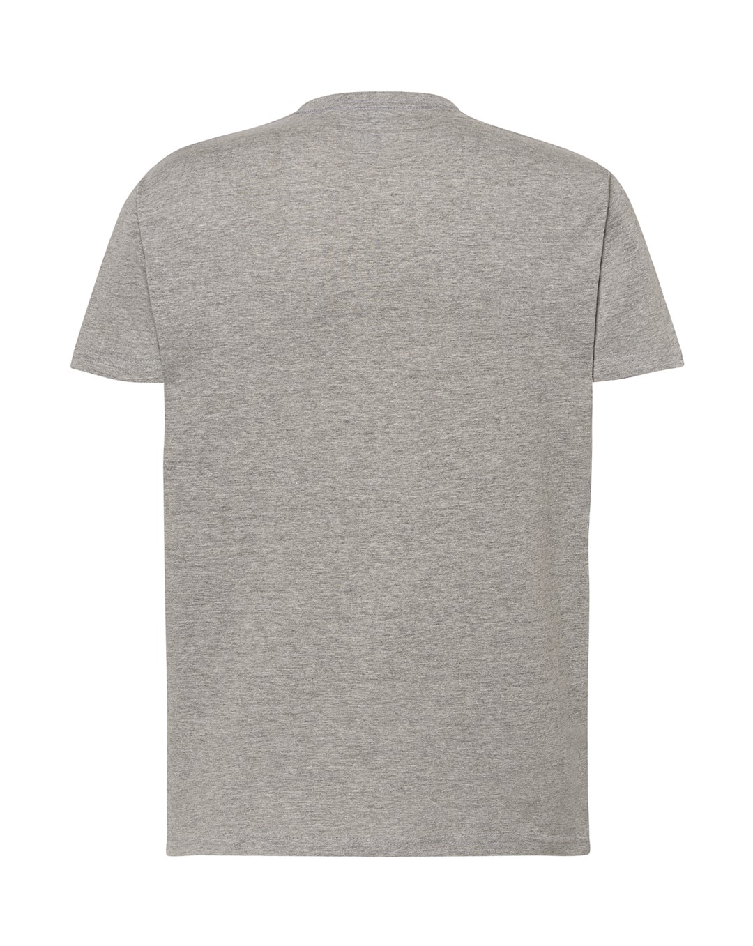 T-shirt męski z krótkim rękawem. Brak bocznych szwów. Podwójne szwy na ramionach. Wzmocniony lycrą ściągacz. Taśma wzmacniająca. 100% bawełna stabilizowana.