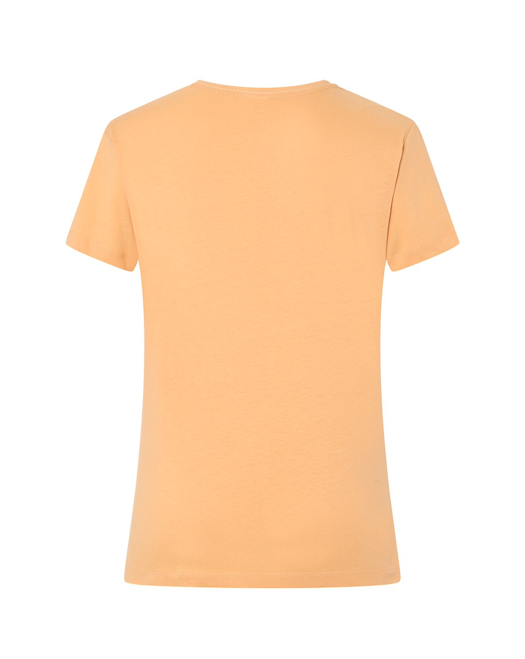 T-shirt damski z krótkim rękawem. Krój dopasowany do sylwetki. Ściągacz przy szyi. Szwy boczne. Podwójne szwy na ramionach i spodzie koszulki. Łatwo usuwalna metka. 100 % bawełna.
