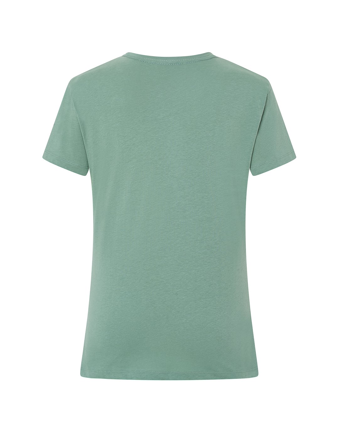 T-shirt damski z krótkim rękawem. Krój dopasowany do sylwetki. Ściągacz przy szyi. Szwy boczne. Podwójne szwy na ramionach i spodzie koszulki. Łatwo usuwalna metka. 100 % bawełna.