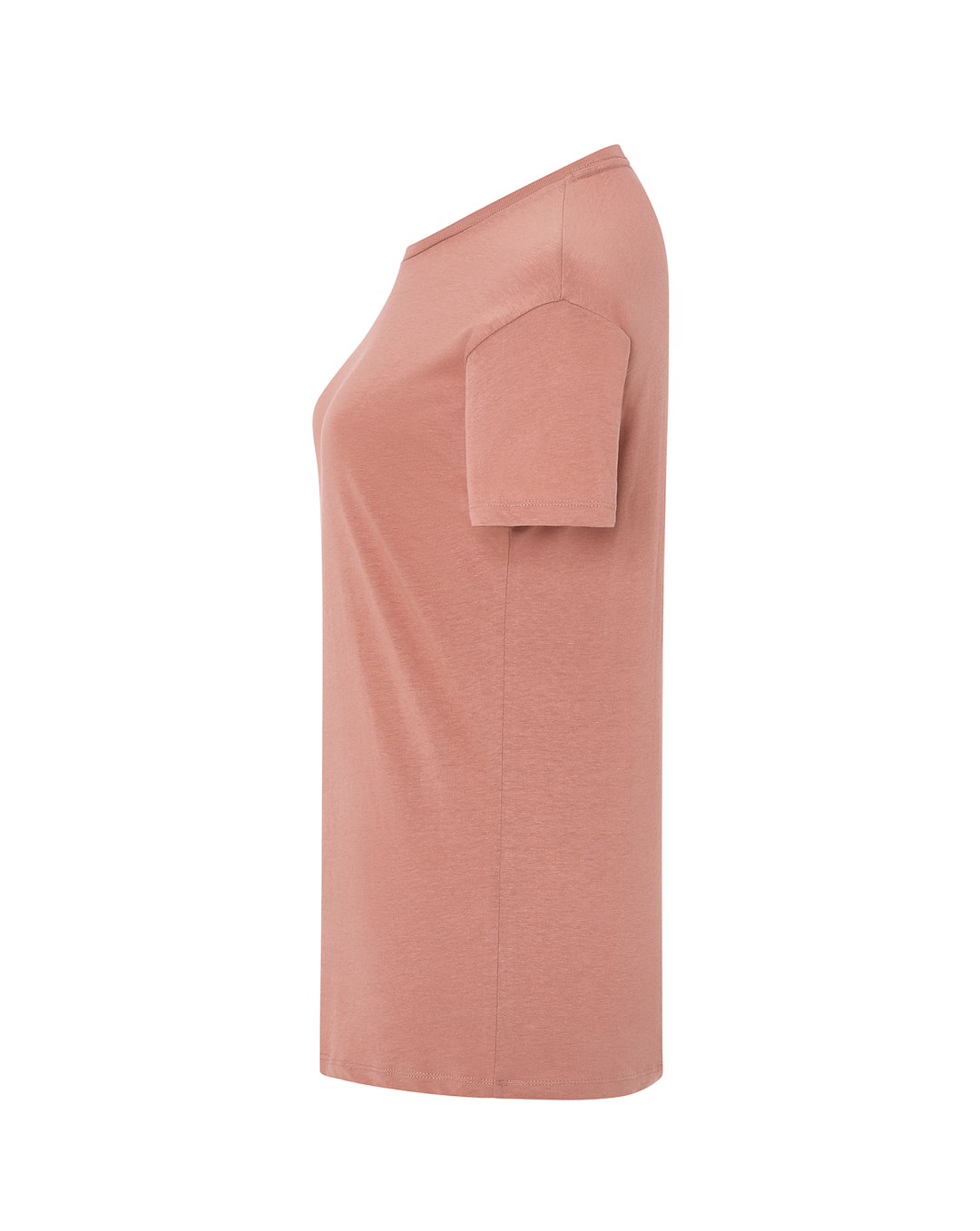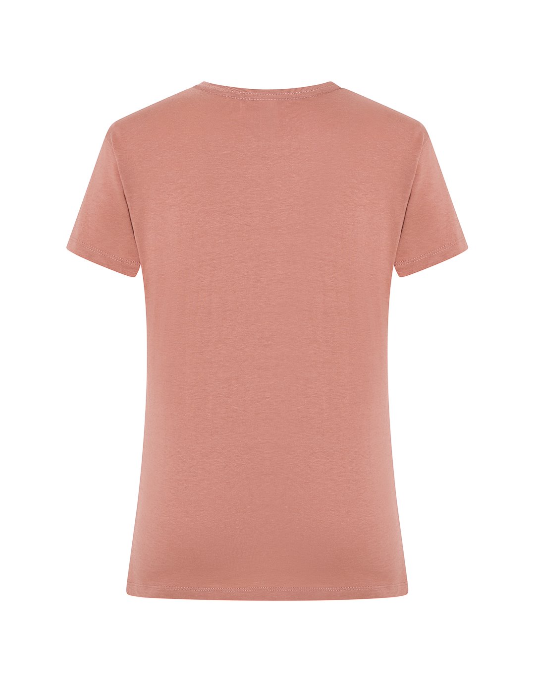 T-shirt damski z krótkim rękawem. Krój dopasowany do sylwetki. Ściągacz przy szyi. Szwy boczne. Podwójne szwy na ramionach i spodzie koszulki. Łatwo usuwalna metka. 100 % bawełna.