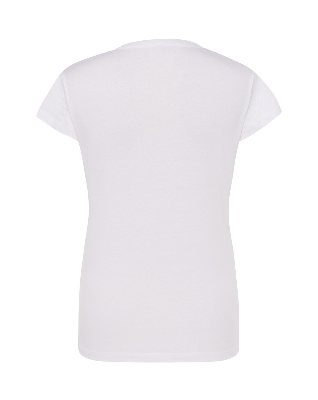 T-shirt damski z krótkim rękawem. Krój dopasowany do sylwetki. Ściągacz przy szyi. Szwy boczne. Podwójne szwy na ramionach i spodzie koszulki.  Łatwo usuwalna metka. 100 % bawełna.