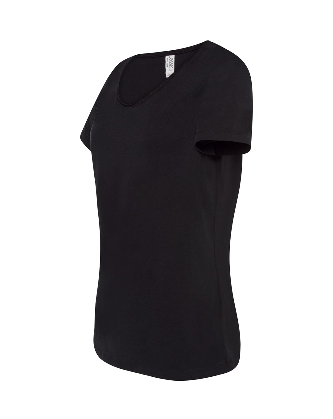 Bluzka damska z krótkim rękawem, okrągły dekolt. Bez lamówki przy dekoldzie.