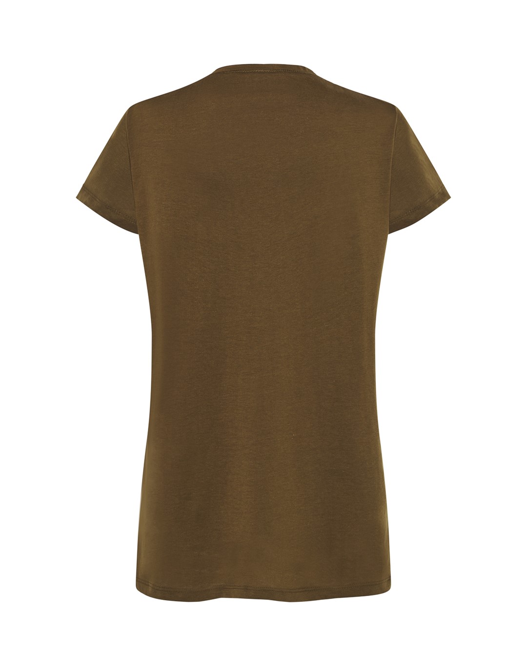 Bluzka damska z krótkim rękawem, okrągły dekolt. Bez lamówki przy dekoldzie.
