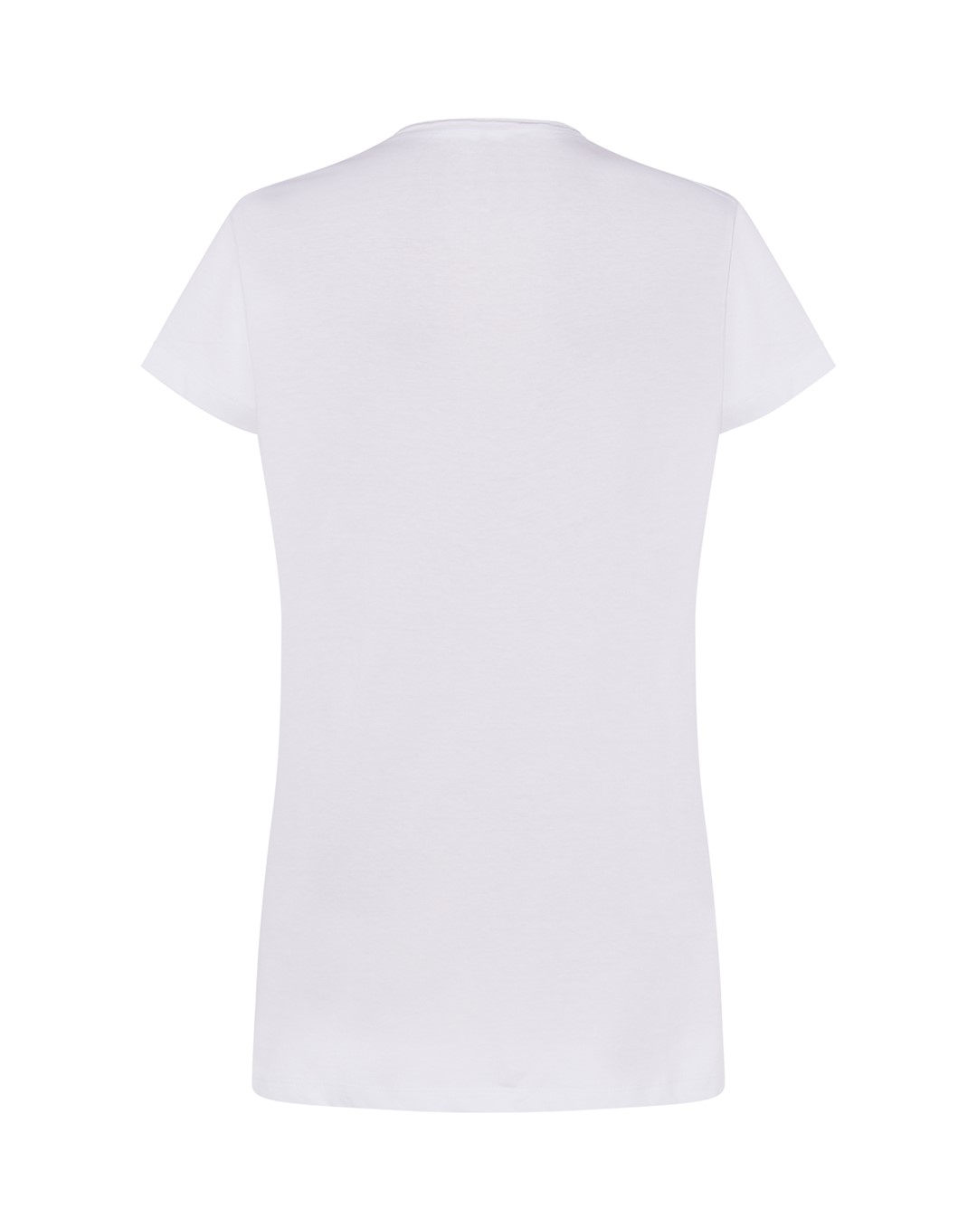 Bluzka damska z krótkim rękawem, okrągły dekolt. Bez lamówki przy dekoldzie.