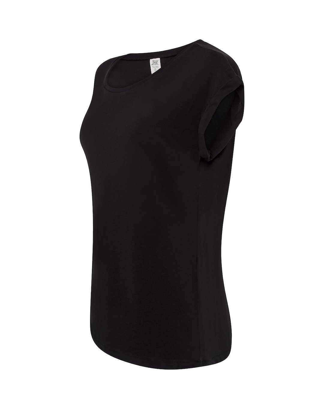 Bluzka damska z krótkim rękawem. Single jersey. Rękawy obszyte, szeroki okrągły dekolt.