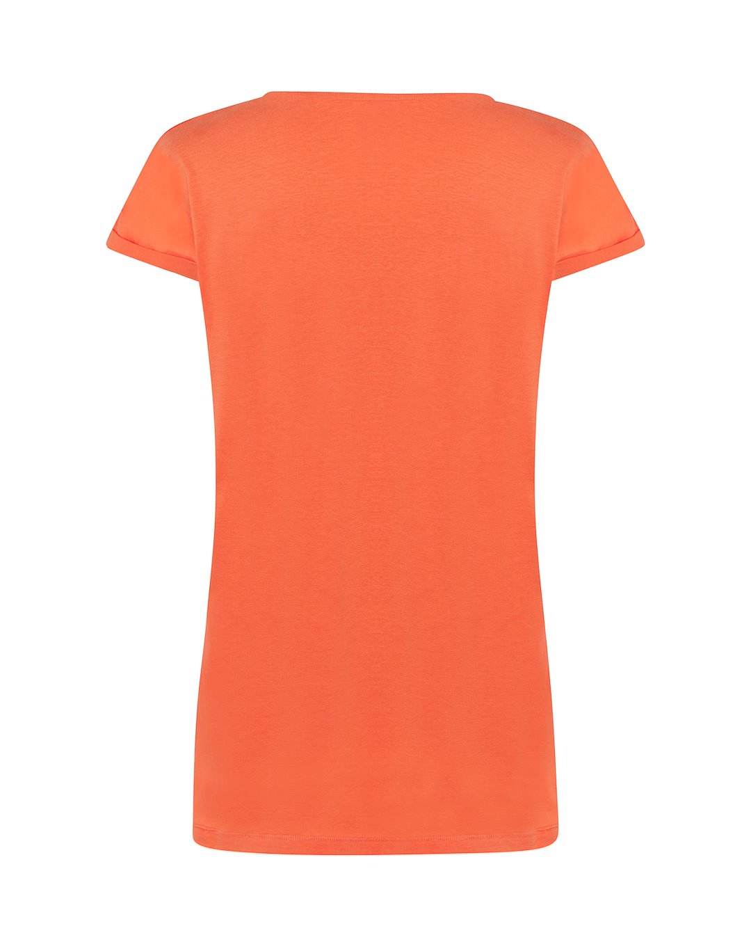 Bluzka damska z krótkim rękawem. Single jersey. Rękawy obszyte, szeroki okrągły dekolt.