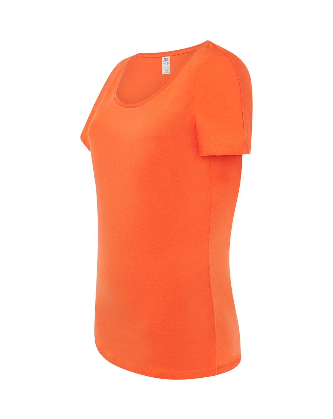 Bluzka damska z krótkim rękawem. Single jersey. Okrągły dekolt, rękawy lekko rozszerzane.
