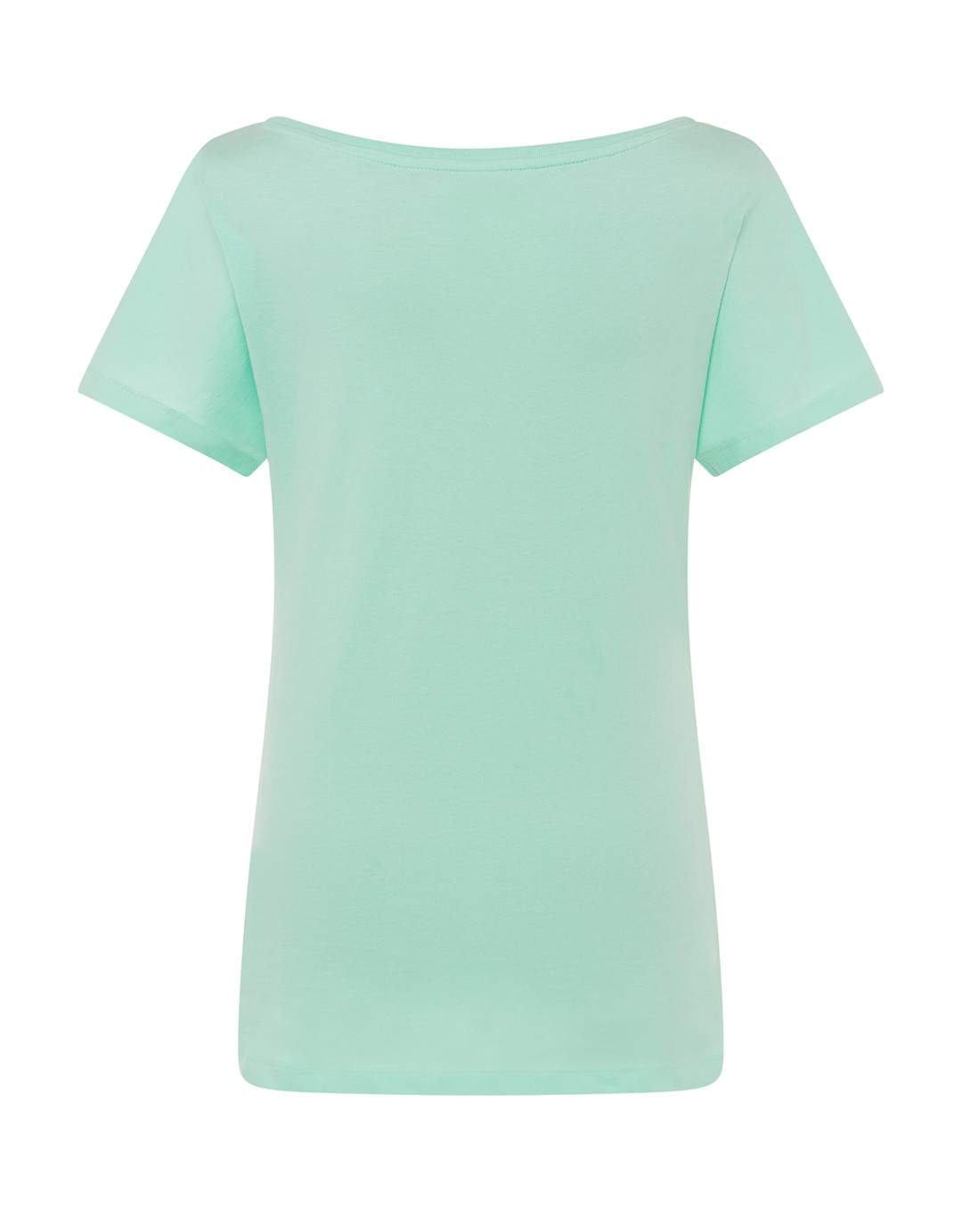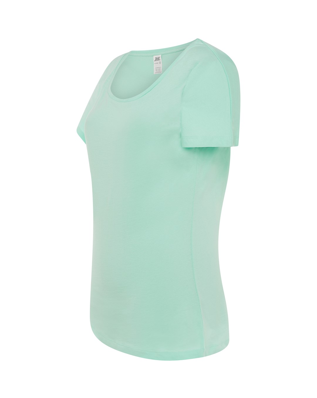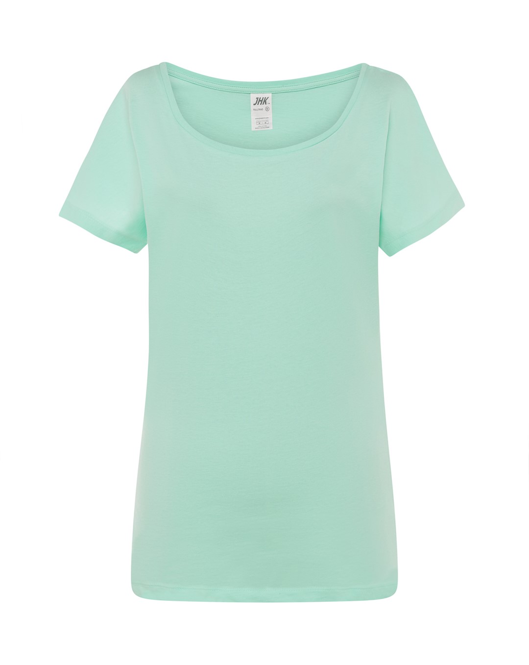 Bluzka damska z krótkim rękawem. Single jersey. Okrągły dekolt, rękawy lekko rozszerzane.