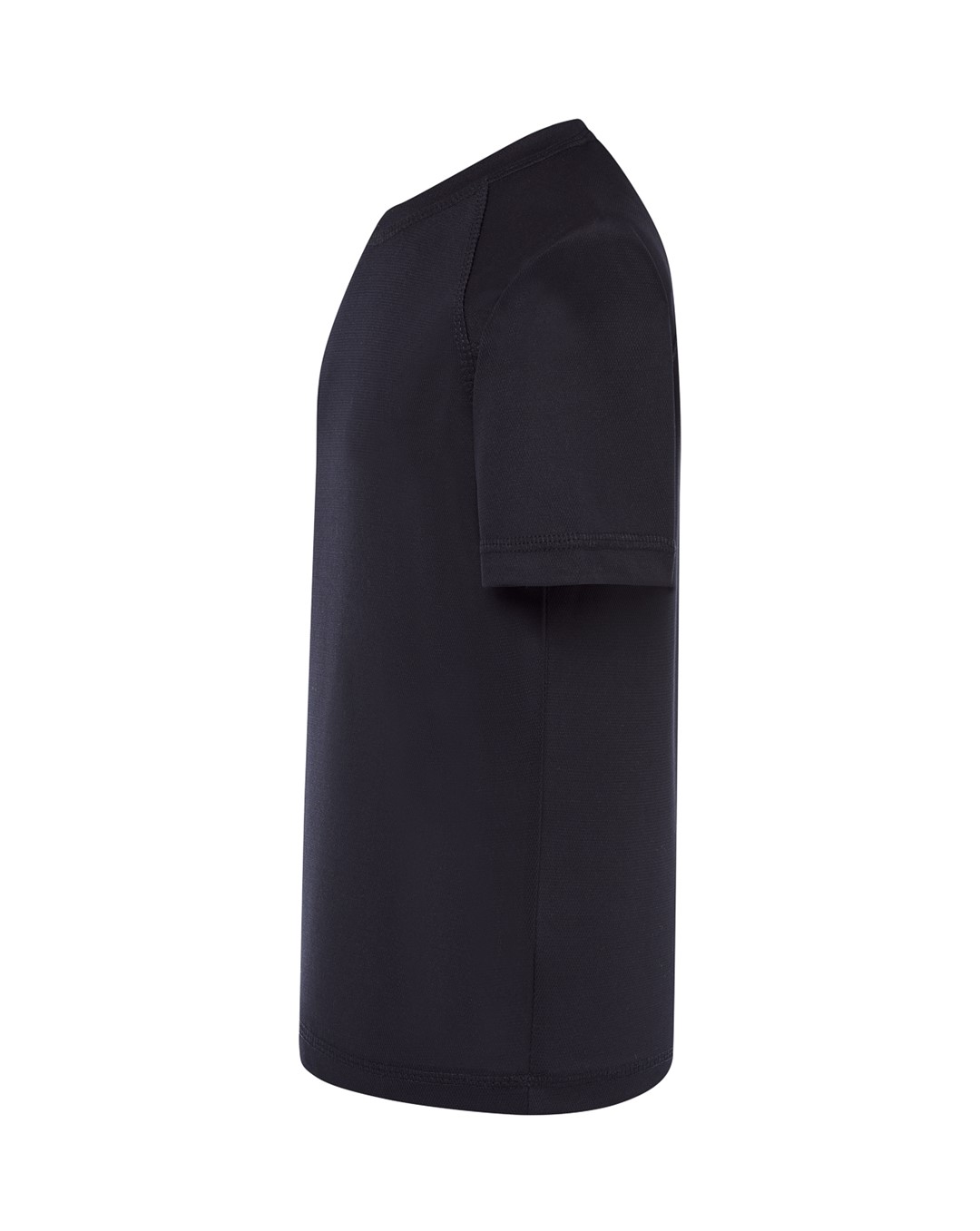 T-shirt dziecięcy z krótkim rękawem. Reglanowy rękaw z ozdobnym przeszyciem. Oddychający materiał szybkoschnący. Łatwo usuwalna metka. 100% poliester teksturowany.